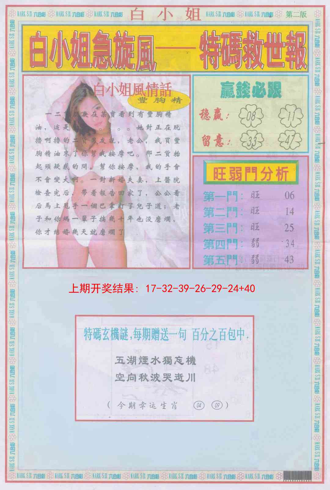 337 二代凤凰报 338 二尾四码 339 发财报 340 发财报