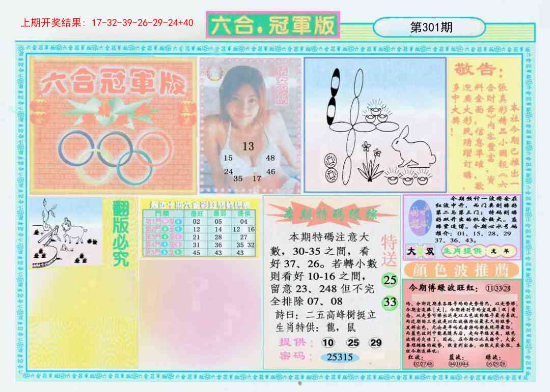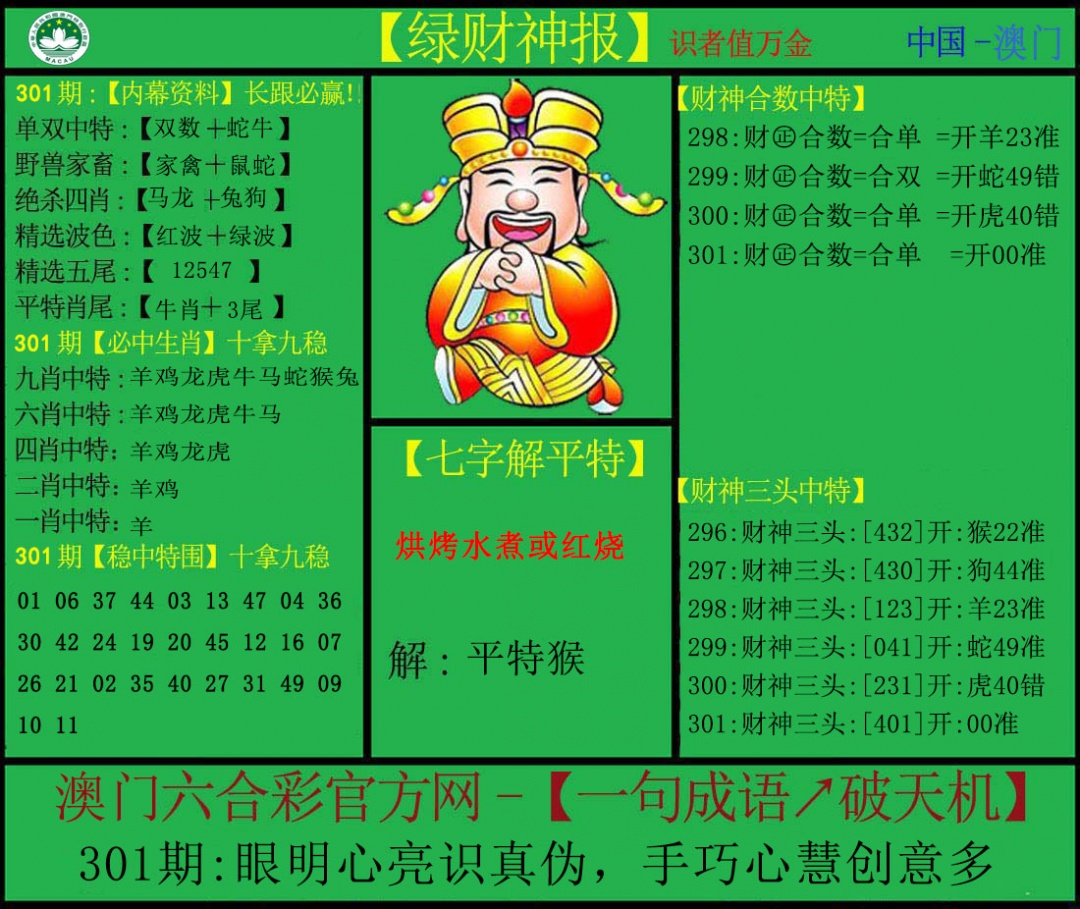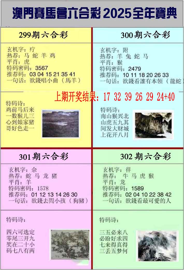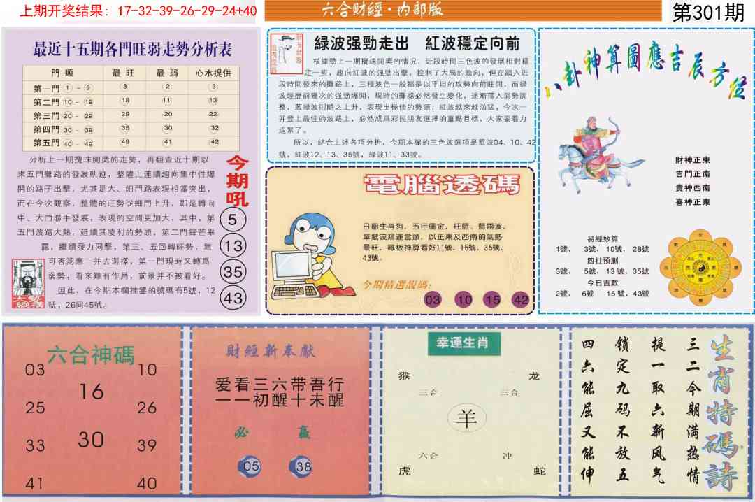 297 独家梅花来料 298 赌经神算 299 大陆报 300 大陆通天报