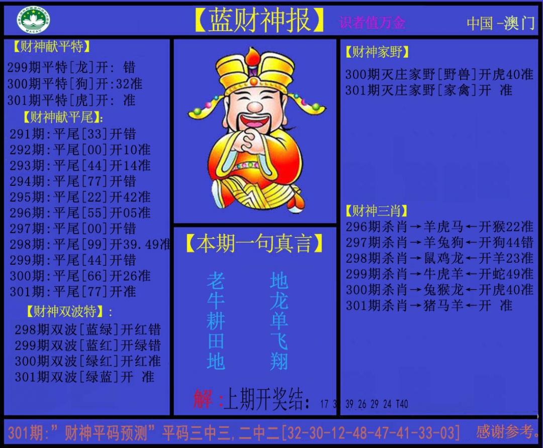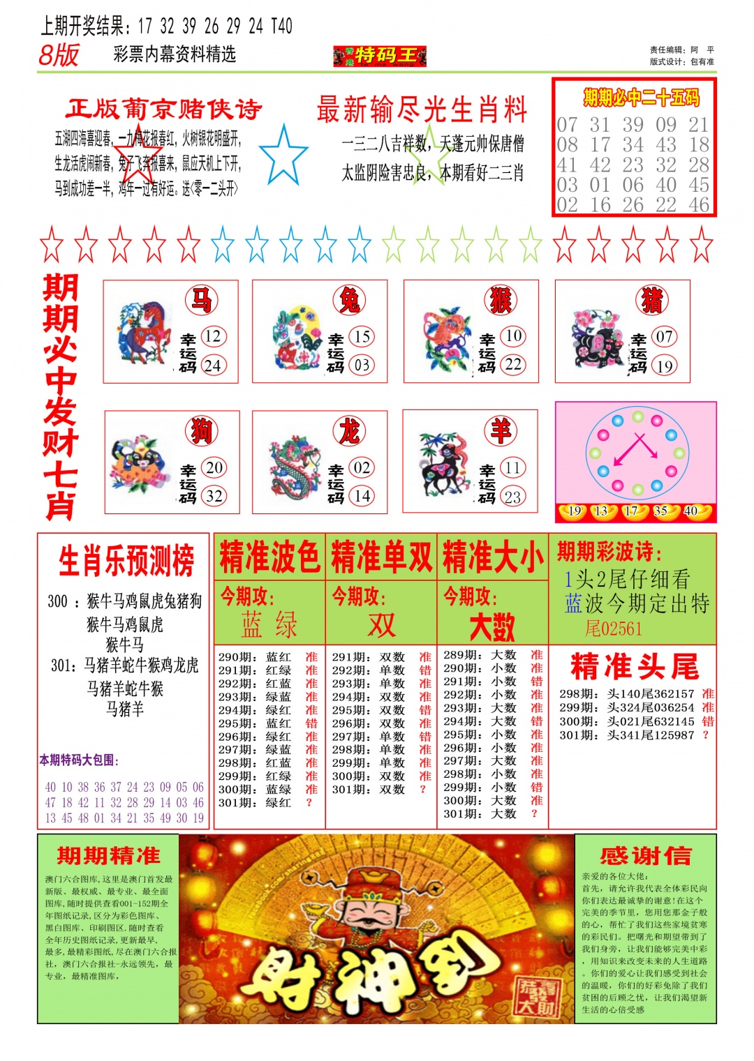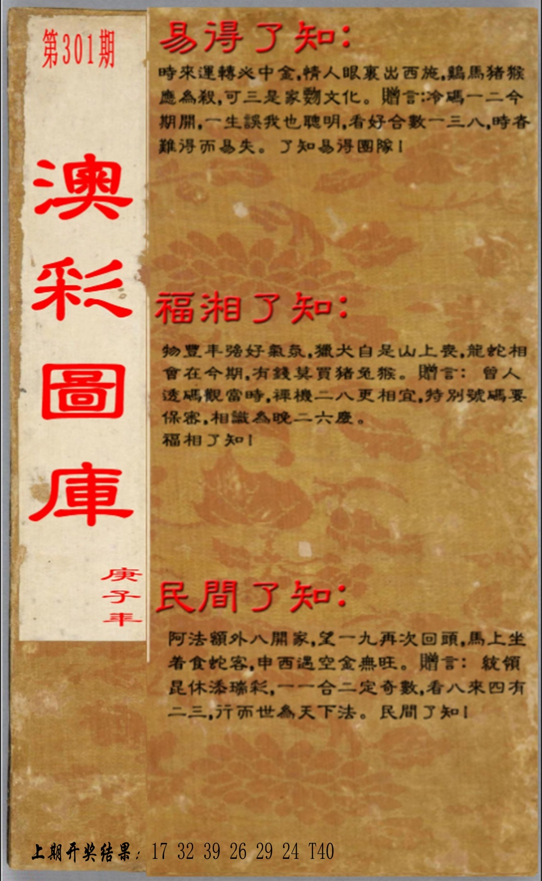 297 独家梅花来料 298 赌经神算 299 大陆报 300 大陆通天报