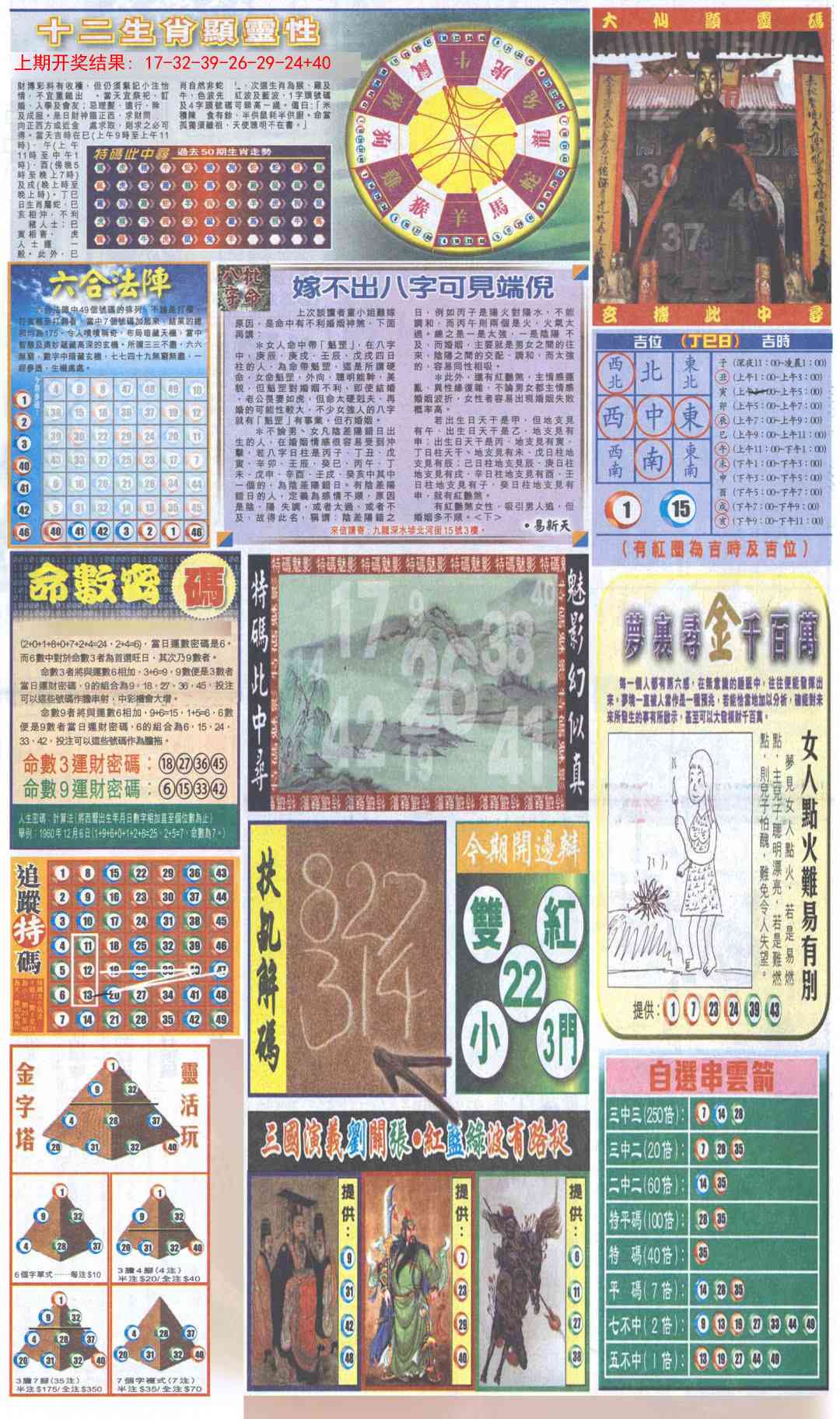 223 波行肖尾藏特图 224 八仙指路 225 八肖中特图 226 包租婆