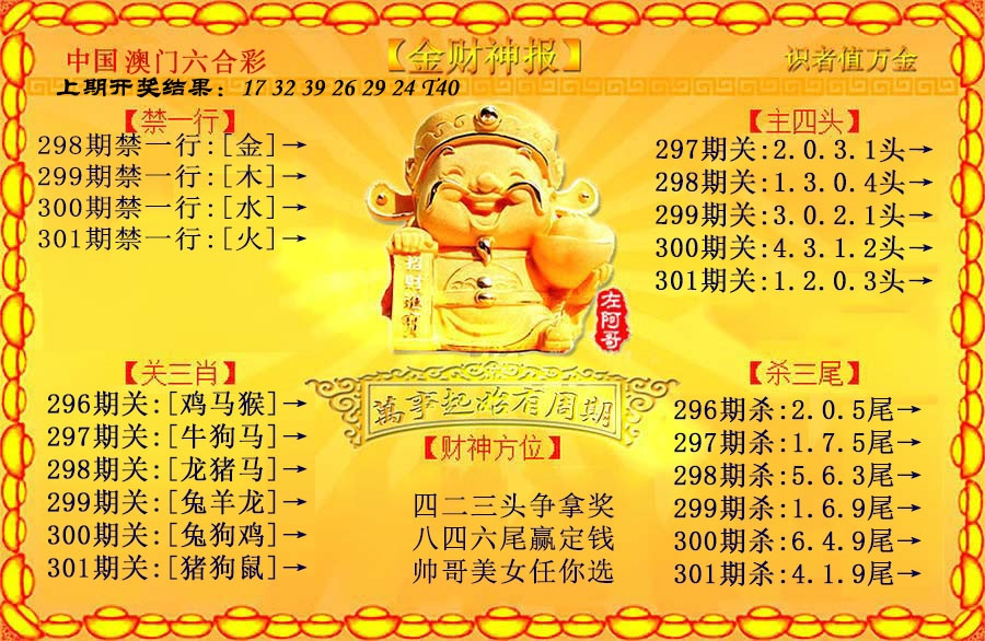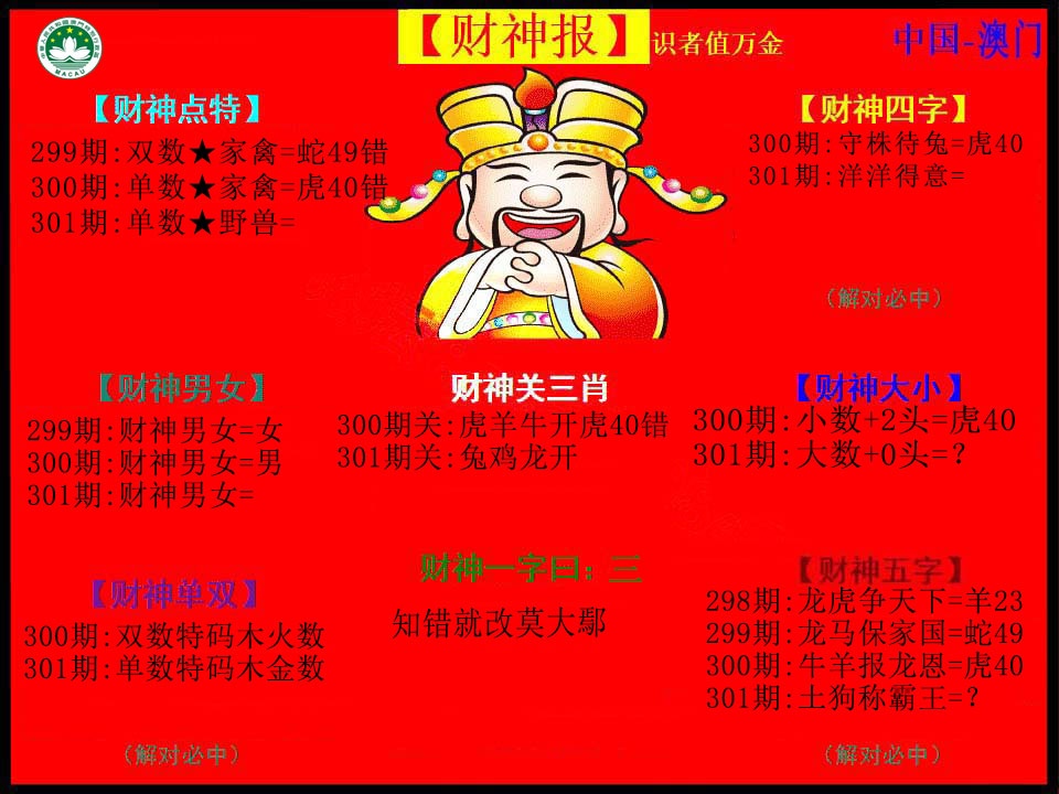 267 彩色正版澳门老鼠报 268 财神指路A 269 财神指路B 270 财童送宝A